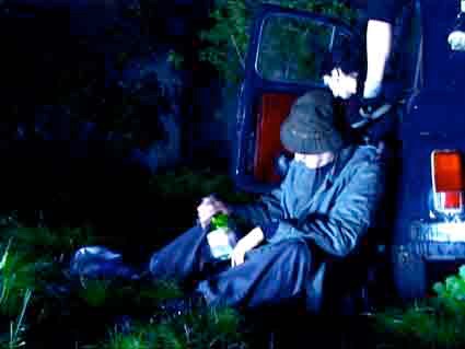 Broken families, burst balloons, broken glass. Confessions from up a tree. Scenes two metres from your eyes, scenes 100 m away, a quadraphonic total sound installation inside a 4000 m2 garden. Large explosions in an empty room, a Fiat 500 bursting with light, text projected in synchronicity with speech, William Tell impersonations, shadow dances, bed-time stories read aloud over megaphone, a lifetime of tears dug out of the ground.
